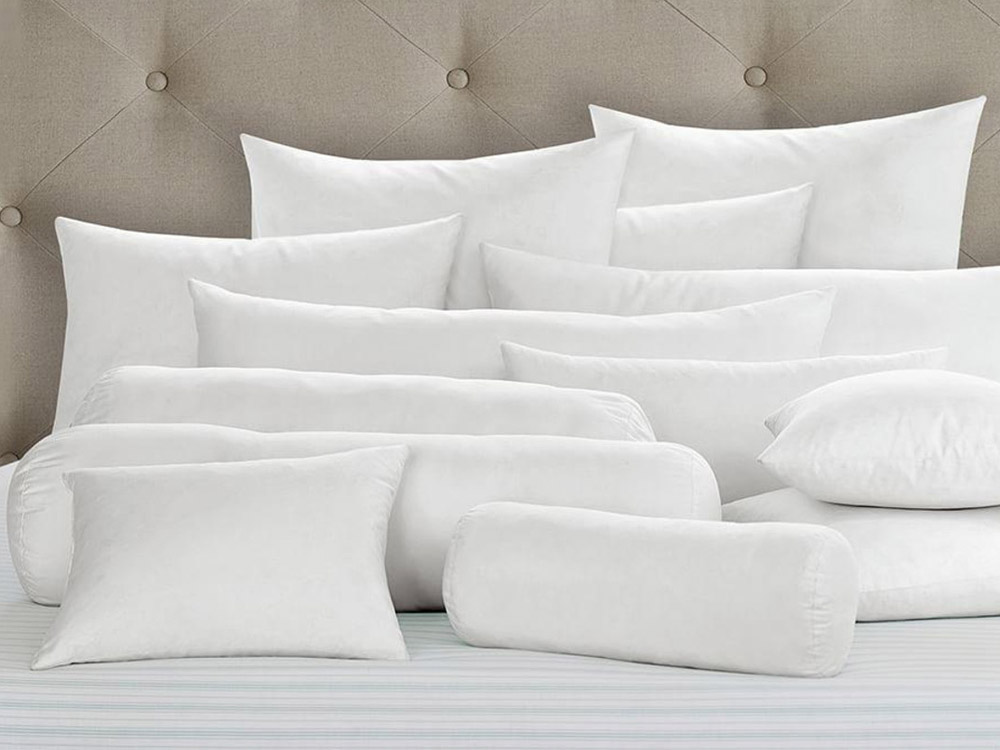 Klasyczna syntetyczna poduszka/ wkład wypełniający do poszewek dekoracyjnych z pokryciem z tkaniny bawełnianej.