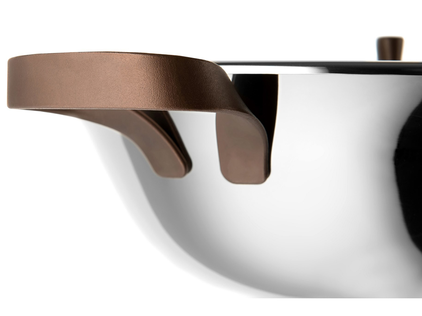 Charakterystycznym motywem wzorniczym są uchwyty w kształcie zawiniętych wstążek w pięknym, stonowanym odcieniu brązu – kolor ten uzyskano dzięki innowacyjnej technologii PVD. Forma uchwytów przywodzi na myśl skórzane detale lub włoski makaron tagliatelle czy pappardelle, sprawiając, że gotowanie w naczyniach Edo kojarzy się z włoską sztuką kulinarną.