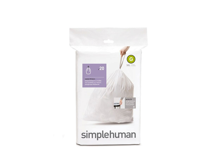 Worki idealnie dopasowują się do koszy simplehuman nie ślizgają się, nie ściągają i pozostają starannie ukryte, gdy pokrywa kosza jest zamknięta.