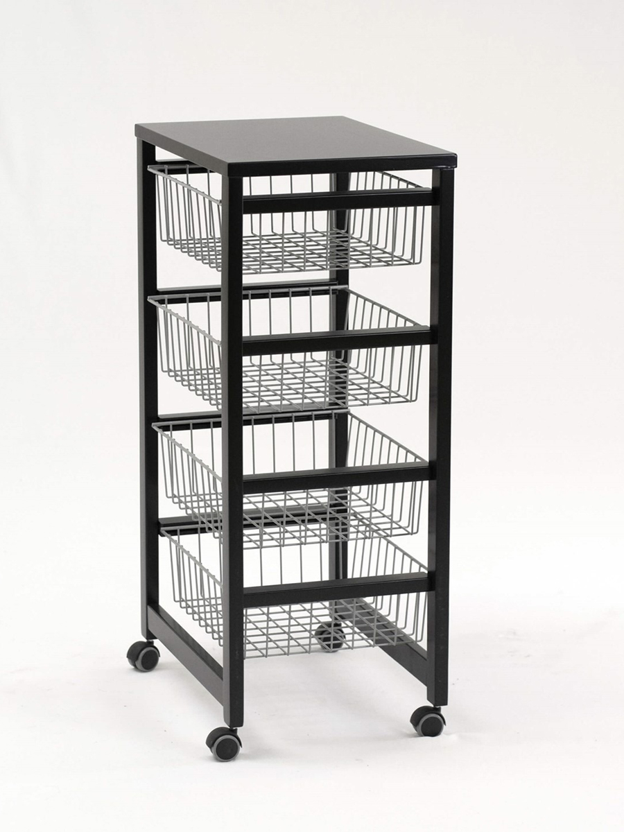 Stylowy wózek kuchenny z drewnianą konstrukcją i metalowymi koszami