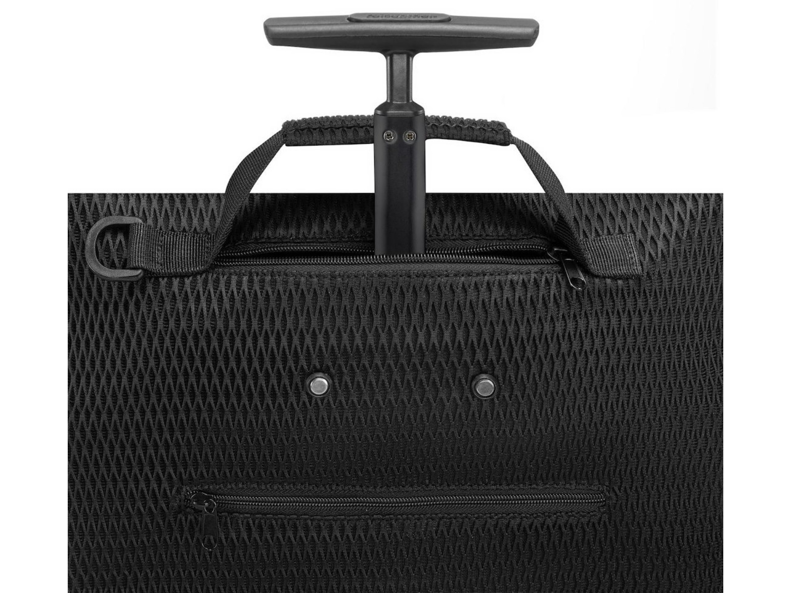 - wygodna sztywna teleskopowa rączka z uchwytem, z możliwością złożenia, chowana w zamykanej kieszeni,