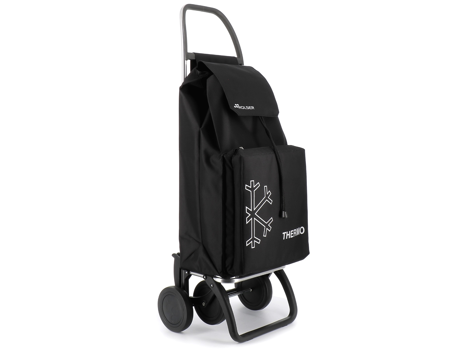 Rolser Saquet 4 Termo to lekki, zwinny i zaskakująco pojemny dwukierunkowy wózek na zakupy - idealny aby wygodnie wrócić do domu z torbami pełnymi zakupów. Jest to bardziej zaawansowany model posiadający 4 kółka i pozwalający na ruch dwukierunkowy. W pozycji z dwoma kółkami można go wygodnie ciągnąć za sobą, a przy czterech kółkach, pchać przed sobą.
