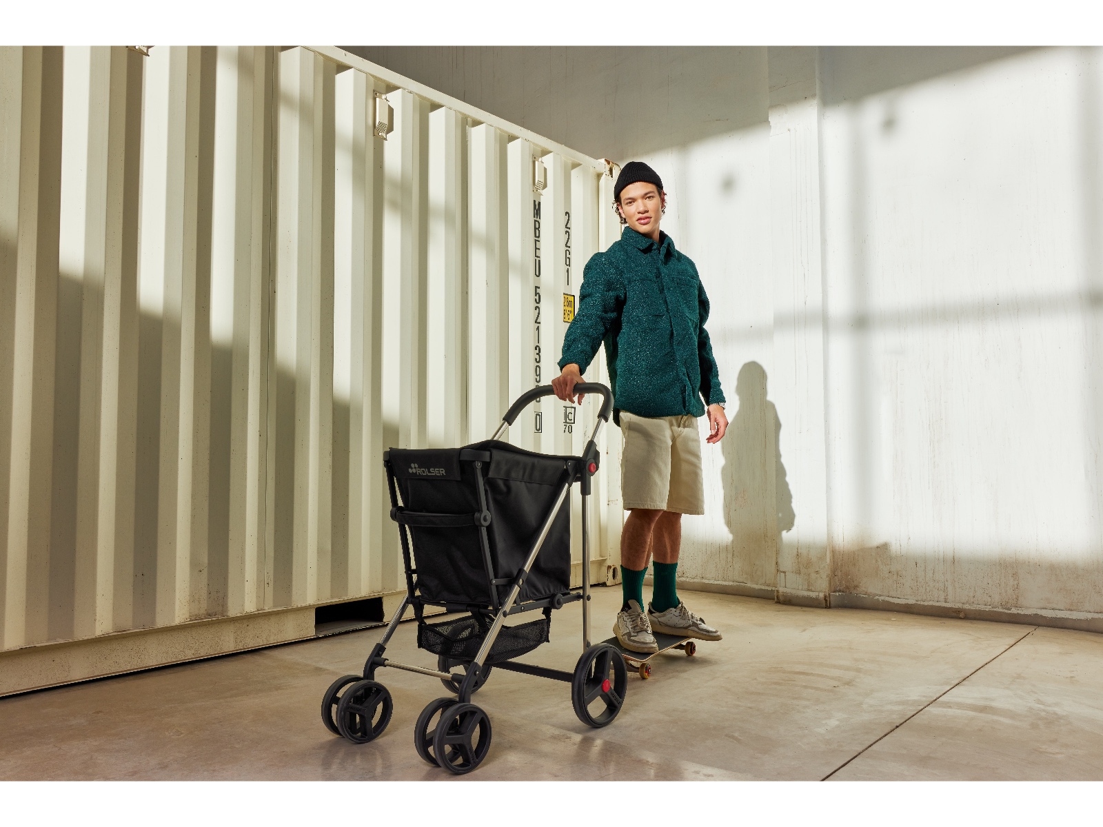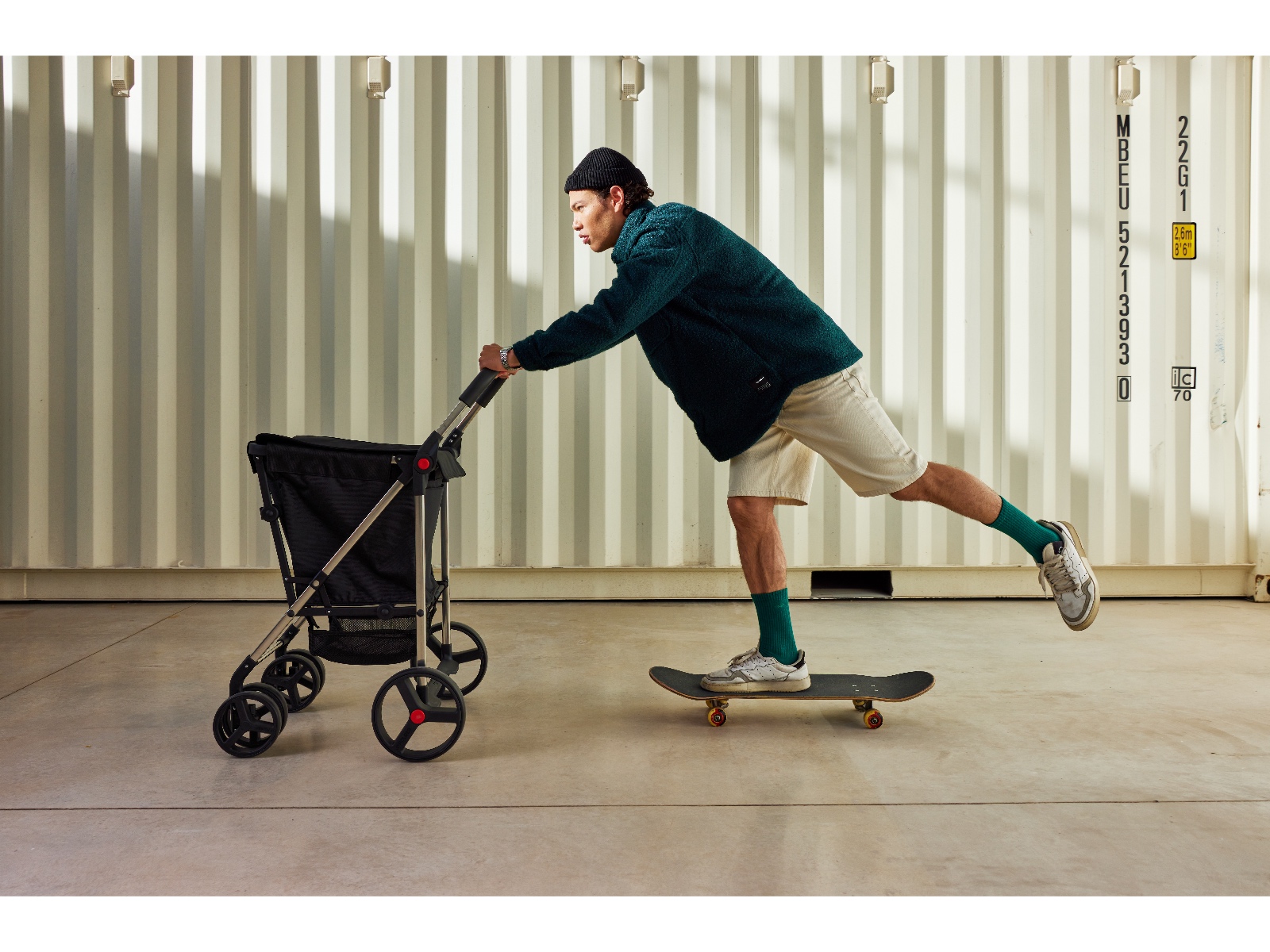 Wózek waży 5,67 kg - prowadzi się go lekko i wygodnie, a wszystkie 4 solidne koła pracują cicho i pewnie, niezależnie od nawierzchni.
