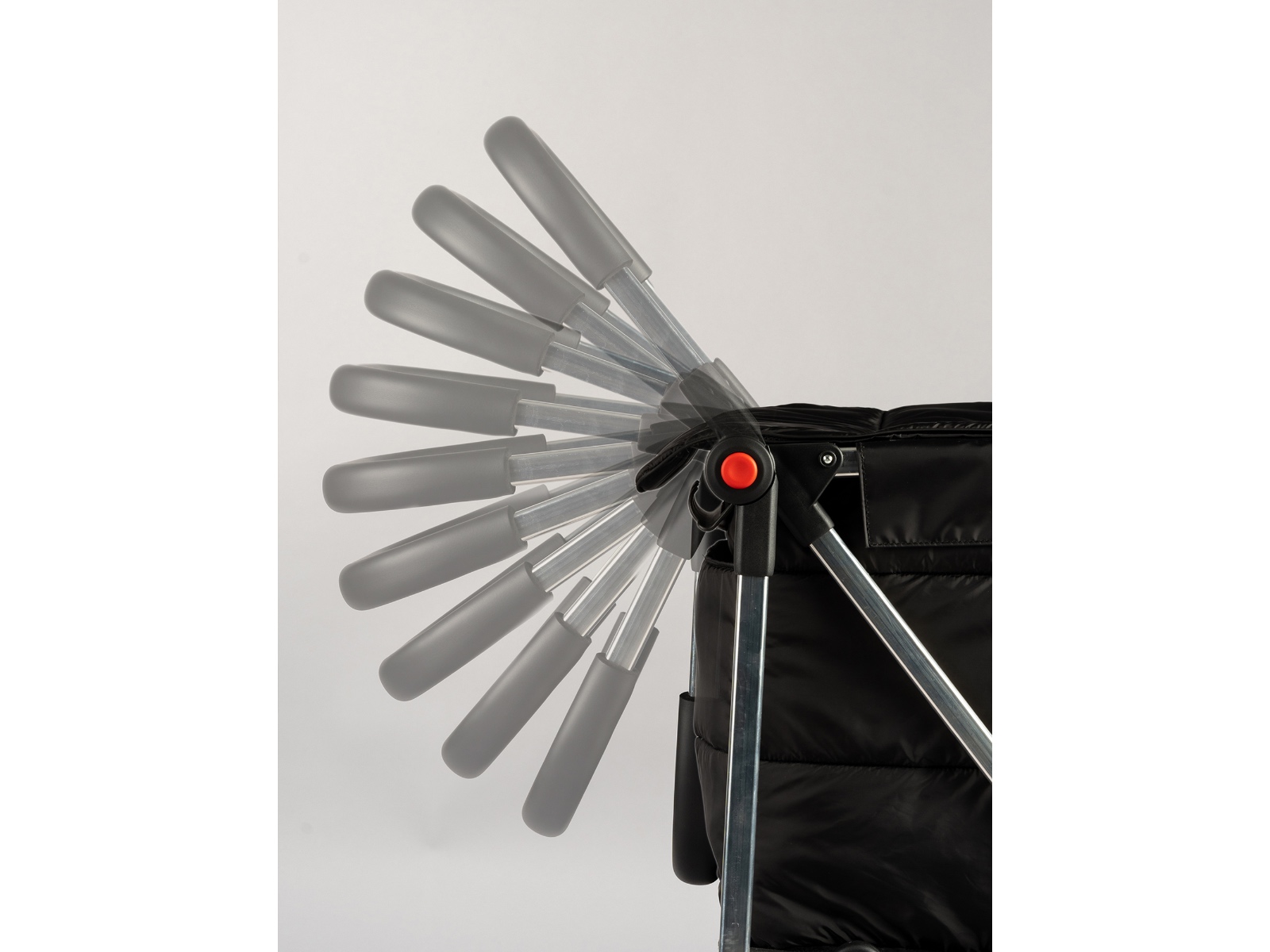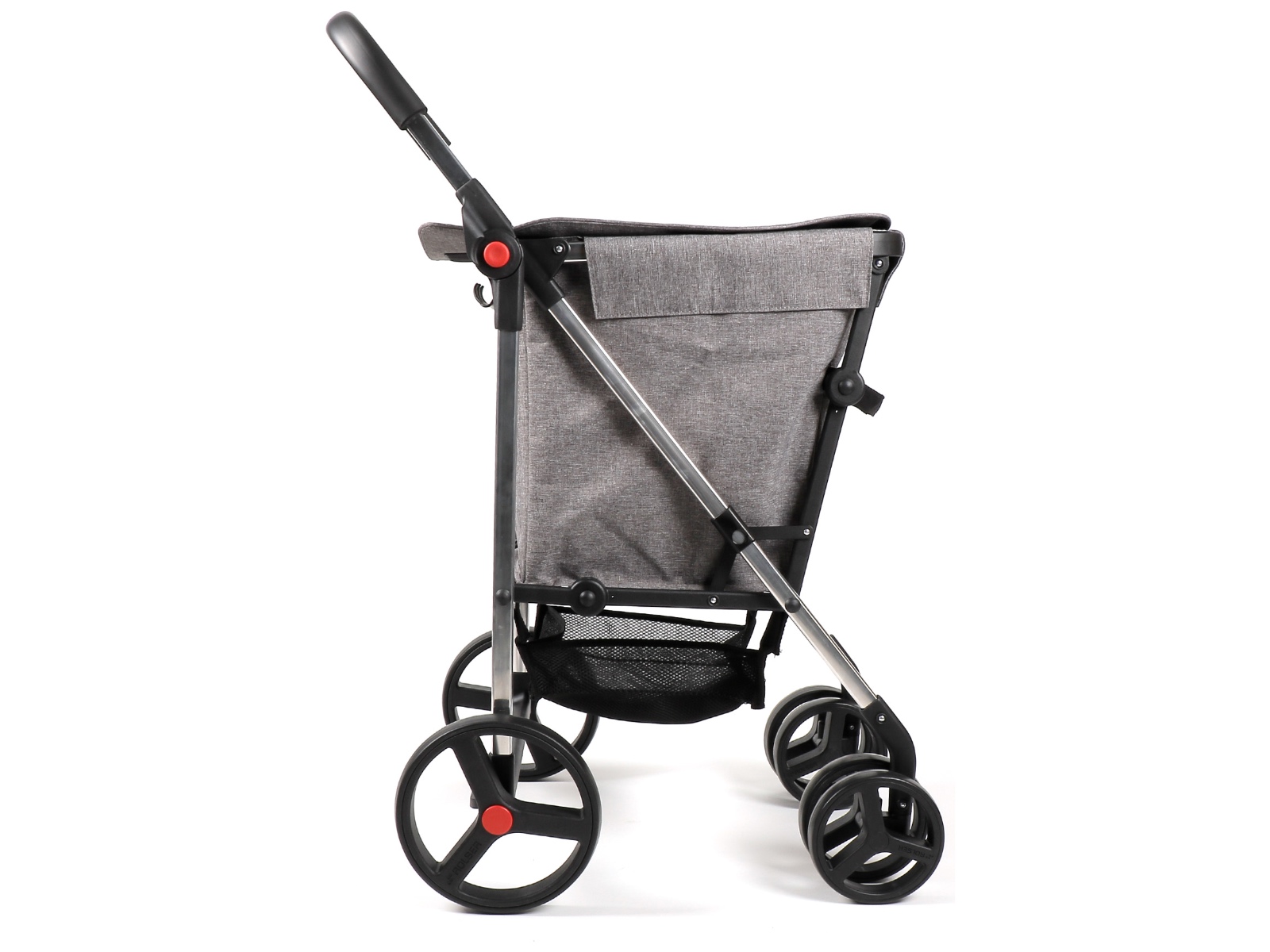 Dodatkowo dopasowany jest do każdego wzrostu, posiada system 10-stopniowej regulacji wysokości uchwytu, który umożliwia również złożenie wózka. Posiada również 2 skrętne koła, które ułatwiają manewrowanie.