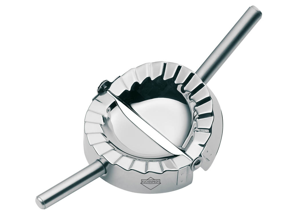 Praktyczna metalowa foremka do wykrawania ciasta i formowania pierogów w jednym.