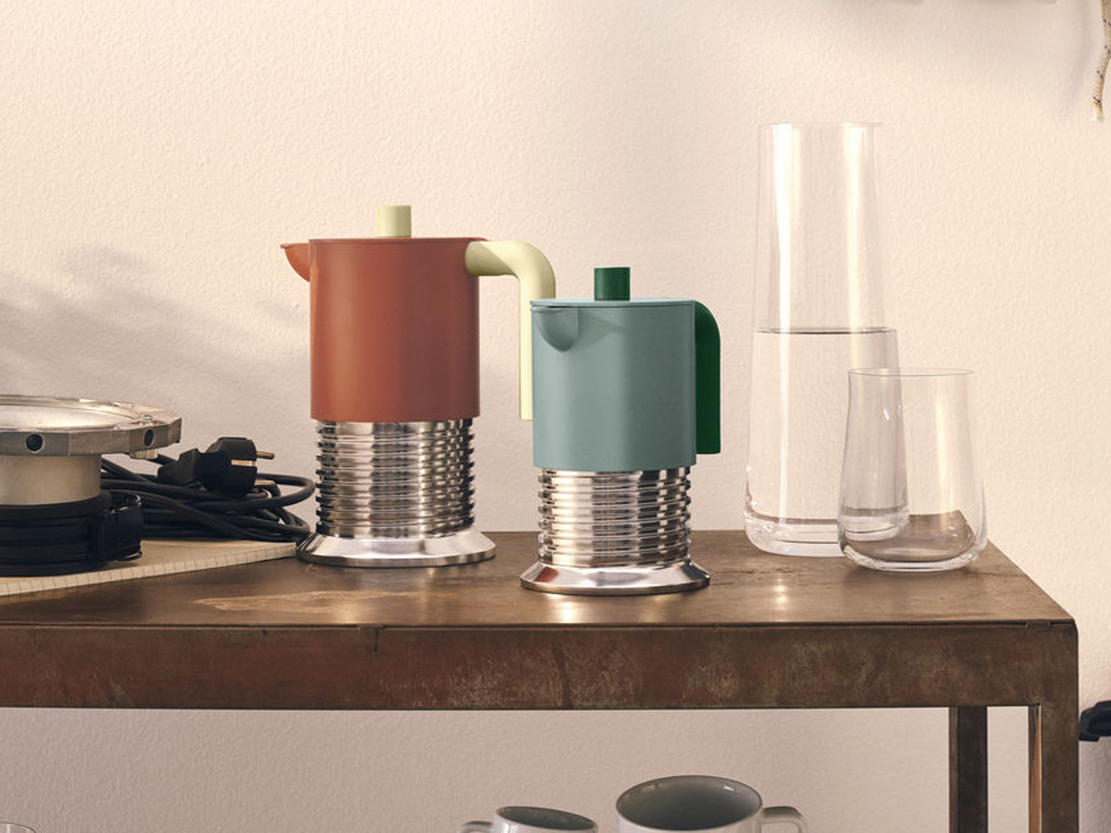 Kolekcja zaparzaczy Vite czerpie inspirację z otoczenia przemysłowego, przekształcając kolorystykę różnych maszyn i narzędzi w dopracowany system barw.