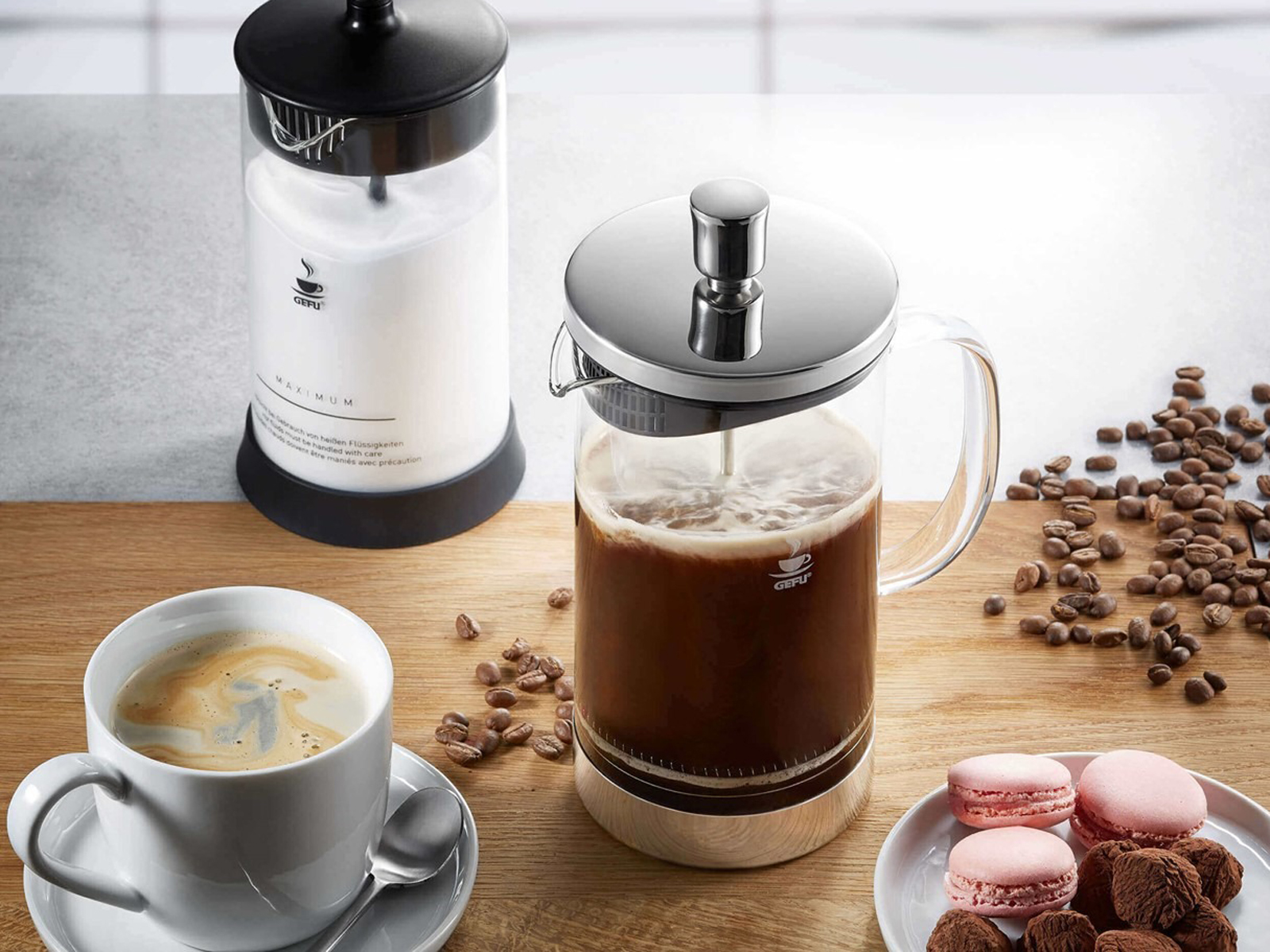 Zaparzacz french press GEFU Diego łączy wygodę z estetyką, stając się stylowym dodatkiem w każdej kuchni.