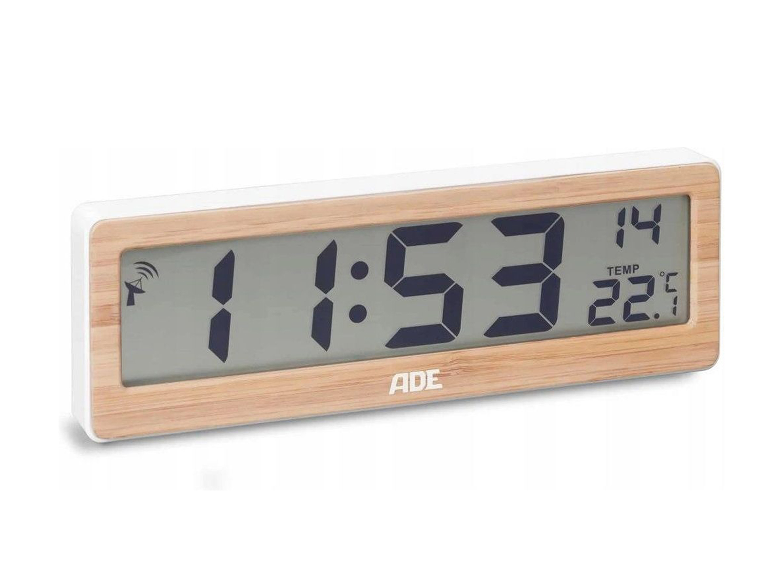 Zegar elektroniczny ADE to urządzenie z bambusową ramką i minimalistycznym designem, który świetnie wpisuje się we współczesne trendy. Automatycznie ustawia czas dzięki sygnałowi radiowemu, co pozwala uniknąć ręcznych zmian przy przejściu między czasem letnim a zimowym. Dodatkowo pokazuje na czytelnym ekranie temperaturę w pomieszczeniu Można go postawić na szafce lub powiesić na ścianie, co zwiększa wygodę użytkowania.