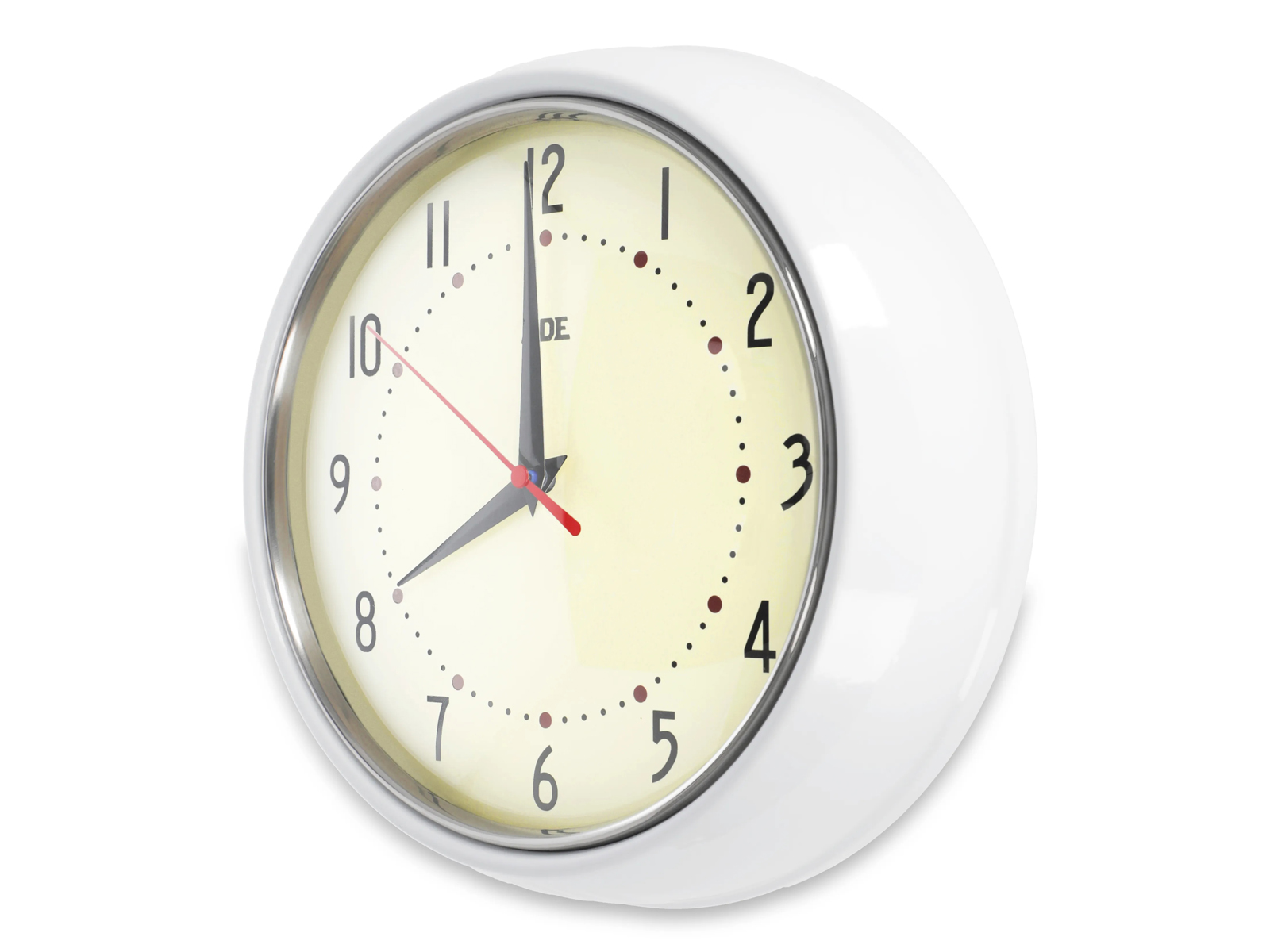 Zegar ścienny ADE to elegancki dodatek do wnętrza, utrzymany w stylu retro. Duże cyfry i wyraźne oznaczenia sprawiają, że odczyt godziny jest szybki i wygodny, a solidna obudowa z malowanego metalu gwarantuje trwałość. Jasne barwy i charakterystyczne kształty na tarczy wyglądają subtelnie i uniwersalnie. Model doskonale sprawdzi się zarówno w kuchni, jak i w salonie czy biurze.