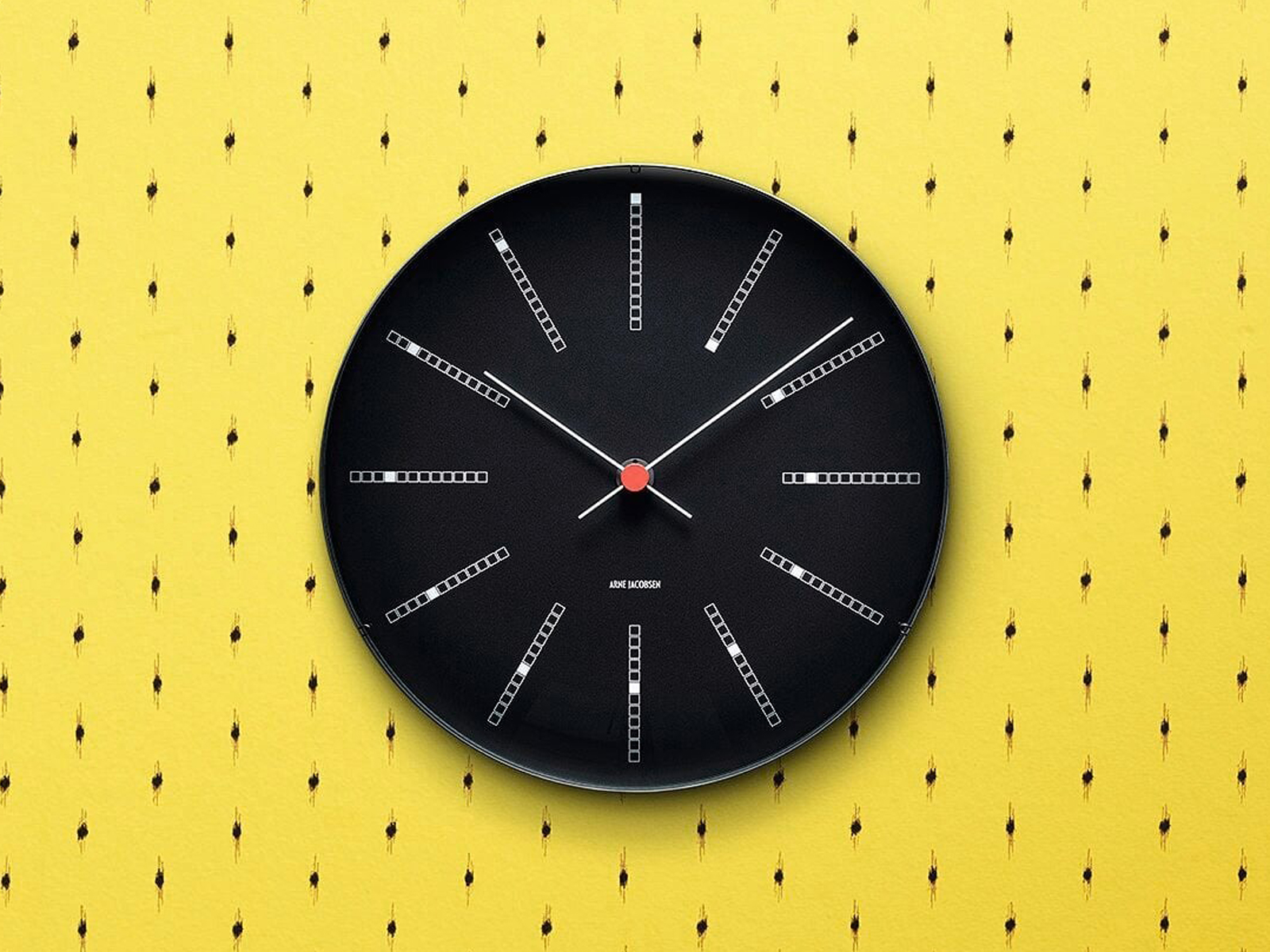 Zegar Arne Jacobsen Bankers to ikona i kwintesencja duńskiego modernizmu oraz jeden z najbardziej rozpoznawalnych projektów w historii wzornictwa użytkowego. Projekt stworzony w 1971 roku przez mistrza Arne Jacobsena dla Narodowego Banku Danii do dziś znajduje wierne odzwierciedlenie we współczesnych pracach. Charakterystyczna typografia w czerni i bieli, wklęsła szklana tarcza oraz precyzyjnie zbudowana koperta tworzą efekt subtelnego „unoszenia się” zegara na ścianie.