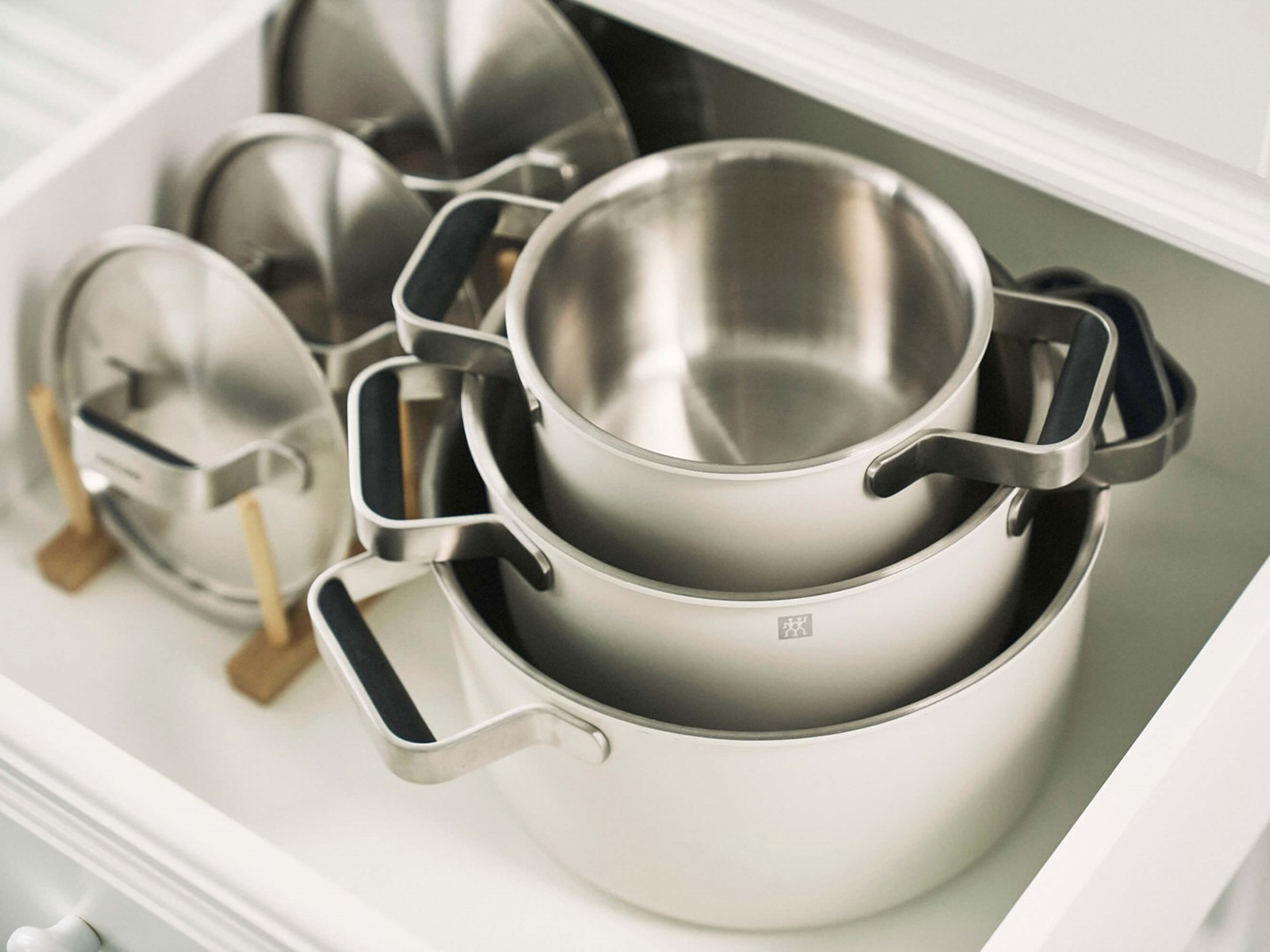 Stylowy zestaw garnków i rondla z pokrywkami Zwilling z kolekcji Pure