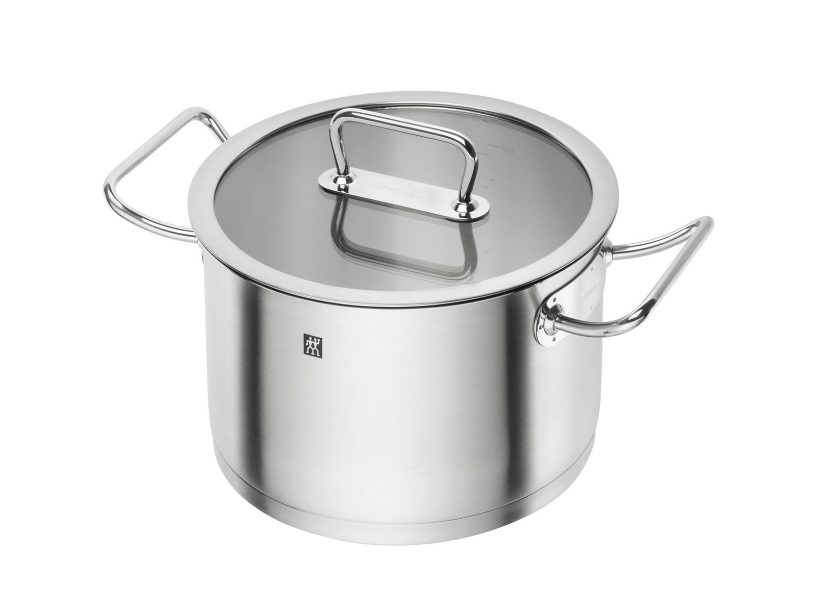 Kolekcja Zwilling Pro to komplet naczyń, który łączy profesjonalne wzornictwo z funkcjonalnością dopracowaną w każdym detalu. Naczynia wykonane z wysokiej jakości stali nierdzewnej 18/10 o satynowym wykończeniu, zachowują higienę, odporność na korozję i neutralność dla smaku potraw. Są przystosowane do wszystkich typów kuchenek, włącznie z indukcyjnymi, a także do piekarnika i zmywarki. Wytrzymują też wysokie temperatury – maksimum 230°C lub 300°C. Wielowarstwowe dno z powłoką Sigma Classic+ lub Sigma Clad 3 Ply oraz aluminiowym rdzeniem gwarantuje bardzo dobre rozprowadzanie i utrzymywanie ciepła, co sprzyja energooszczędnemu gotowaniu. Solidne uchwyty ze stali nierdzewnej pozostają chłodne podczas użytkowania, a charakterystyczne, szerokie krawędzie ułatwiają nalewanie bez bałaganu. Wewnętrzna miarka sprawia, że precyzyjne odmierzanie płynów i porcjowanie gotowych dań nie będzie już żadnym problemem. W wybranych modelach potrójna powłoka nieprzywierająca Duraslide Ultra zapewnia dodatkowy komfort smażenia delikatnych składników.