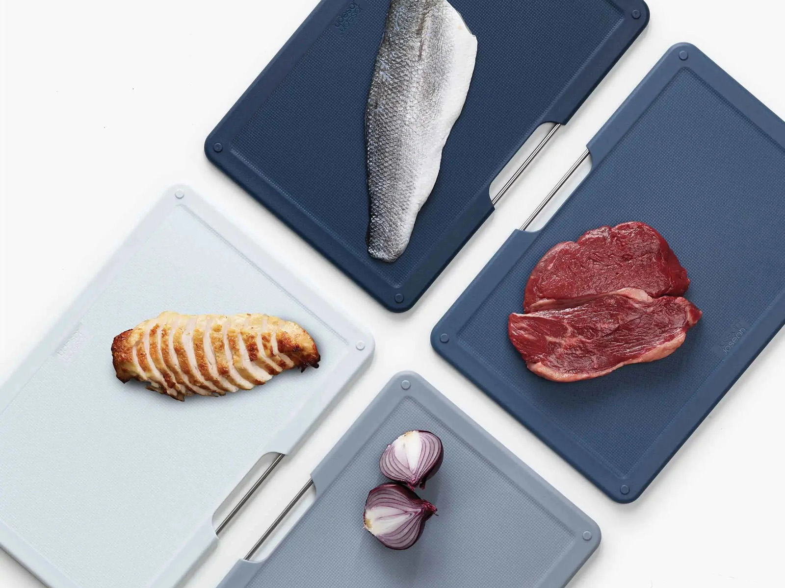 Kolory desek w 4 odcieniach niebiesko-szarych umożliwia to przyporządkowanie deski do rodzaj produktów, które będą na niej krojone np.: mięso, warzywa, chleb, ryby.