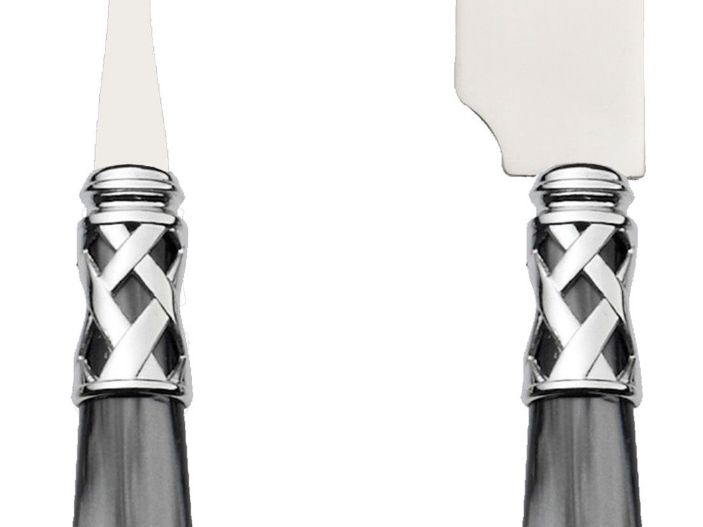 Sztućce wykonane z wysokiej jakości stali nierdzewnej z akrylowymi trzonkami w kolorze perłowej czerni.