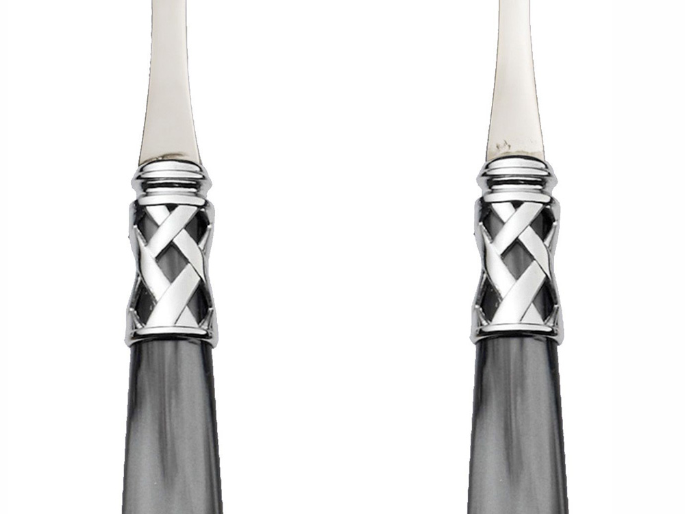 Sztućce wykonane z wysokiej jakości stali nierdzewnej z akrylowymi trzonkami w kolorze perłowej czerni.