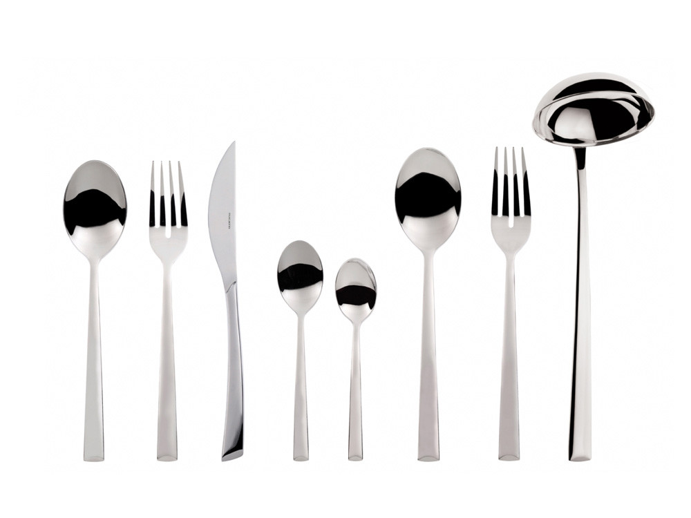 Sztućce wykonane z wysokiej jakości polerowanej na wysoki połysk stali nierdzewnej o prostych lekko rozszerzających się jednolitych trzonkach zakończonych na równo.