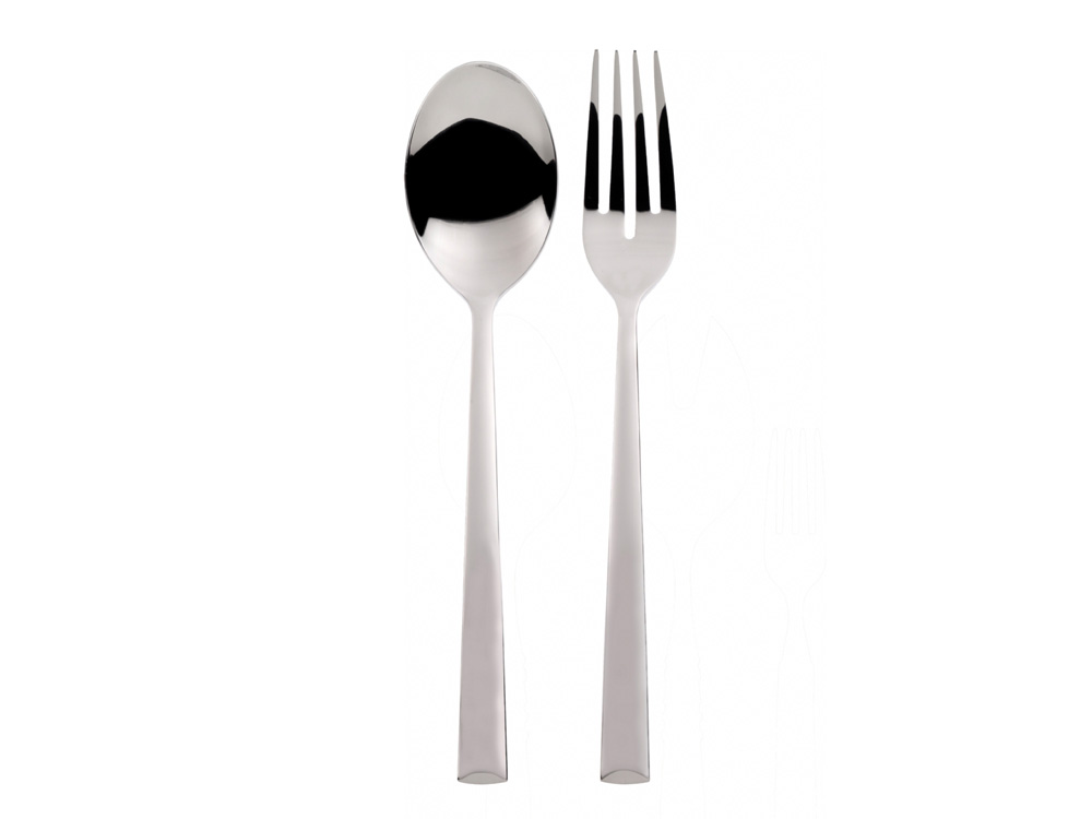 Elegancki zestaw sztućców do serwowania z serii Caprera składający się z dużej łyżki i widelca.
