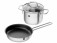 W zestawie znajduje się garnek z pokrywką 1,5 l i patelnia płytka z powłoką nieprzywierającą
