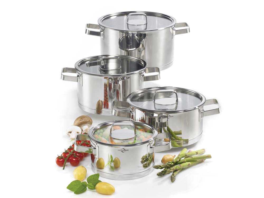 Komplet garnków San Remo z wysokiej jakości stali nierdzewnej uprzyjemnią codzienne gotowanie swoim klasycznym, a zarazem eleganckim kształtem.