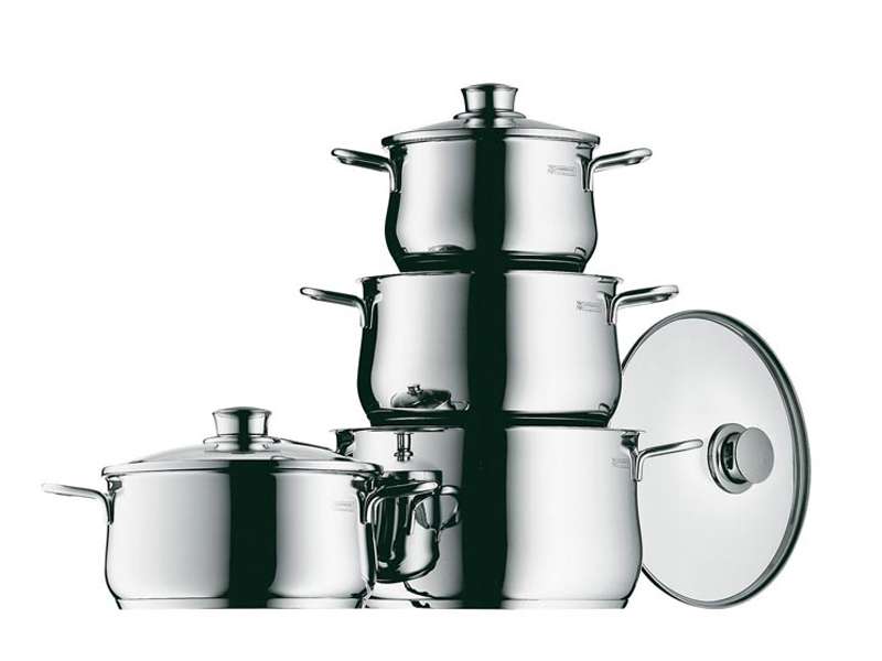 Garnki wykonane z odpornej na zarysowania i kwasy owocowe polerowanej stali nierdzewnej Cromargan® gwarantującej trwałość i niezawodność użytkowania.