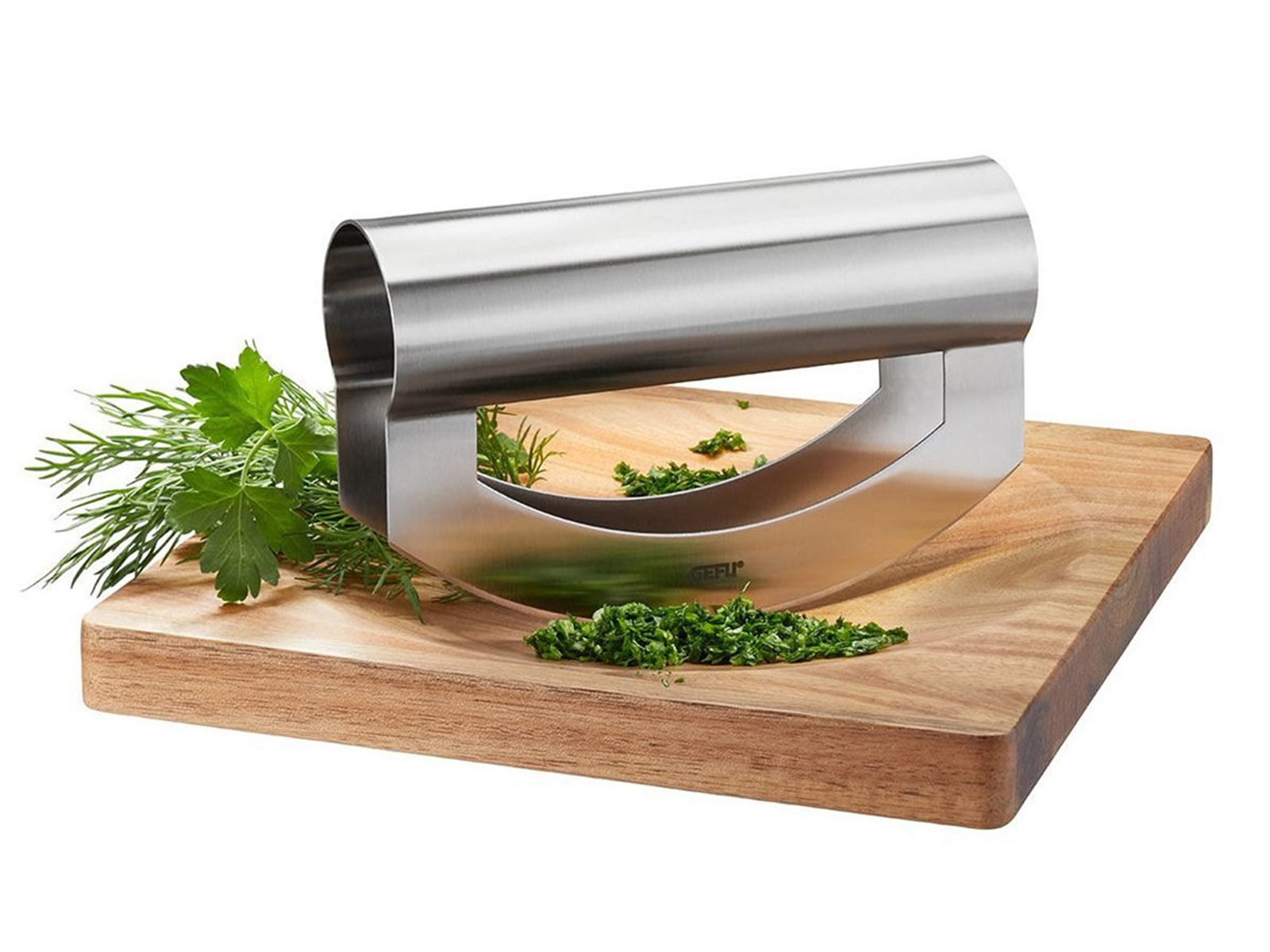 Zestaw GEFU Viavo to specjalistyczny komplet narzędzi zaprojektowany do precyzyjnego krojenia świeżych ziół, sałaty i cebuli, który zachwyci każdego miłośnika gotowania. Podwójne ostrze noża ze stali nierdzewnej zapewnia wyjątkową ostrość i efektywność cięcia, a ergonomiczny uchwyt gwarantuje pełną kontrolę i komfort podczas długotrwałej pracy. Stabilna deska z drewna akacjowego, wyposażona w 4 antypoślizgowe nóżki, stanowi idealną podstawę do krojenia i siekania w bezpiecznych warunkach. Dodatkowo, możliwość mycia w zmywarce znacznie ułatwia utrzymanie zestawu w czystości po każdym użyciu.