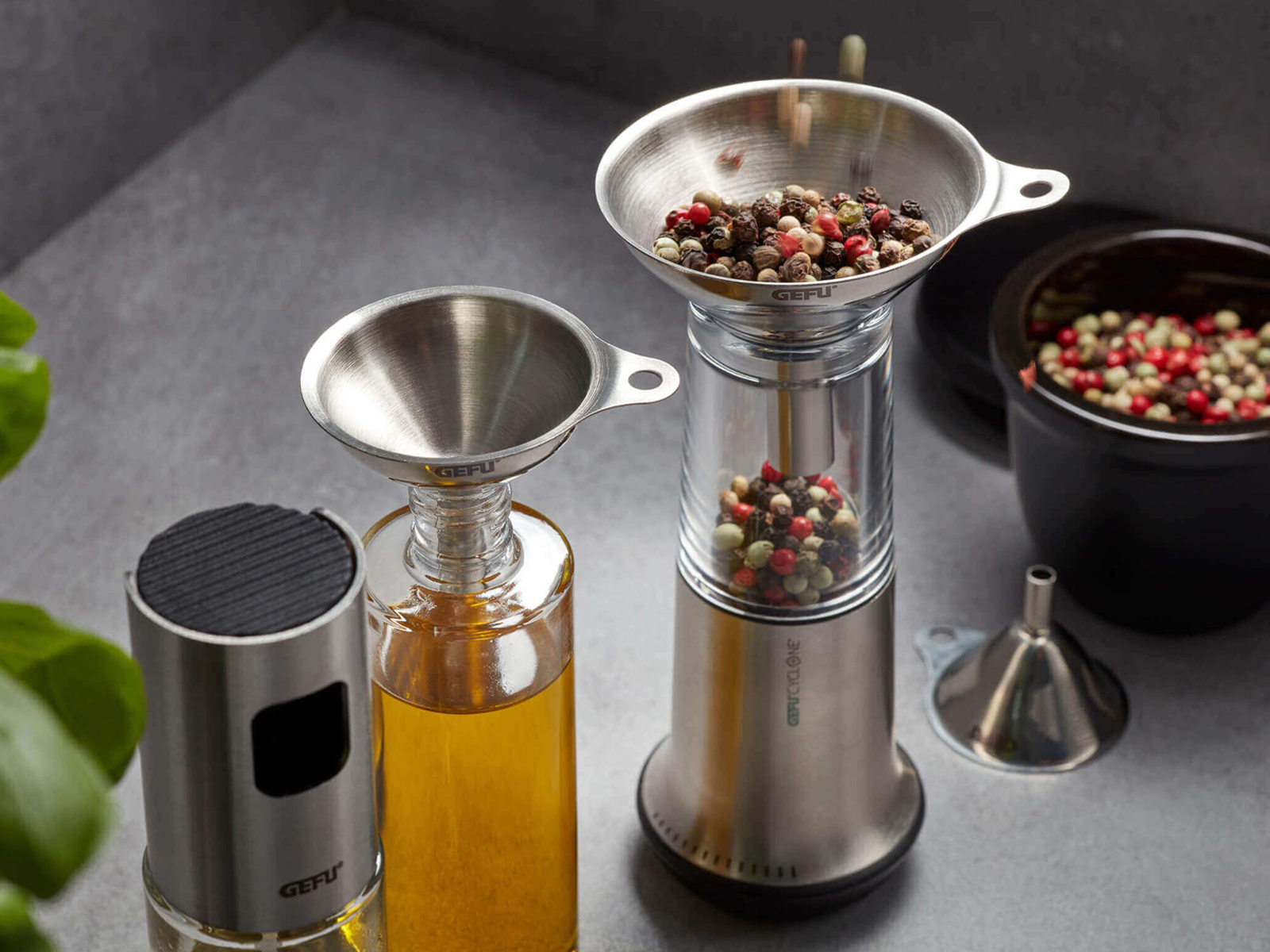 Zestaw lejków GEFU Versare pomoże w szybkim i prostym napełnianiu butelek i przyprawników.