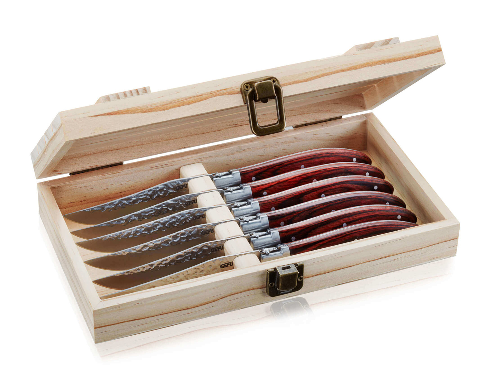 Stylowy zestaw noży do steków w drewnianym pudełku