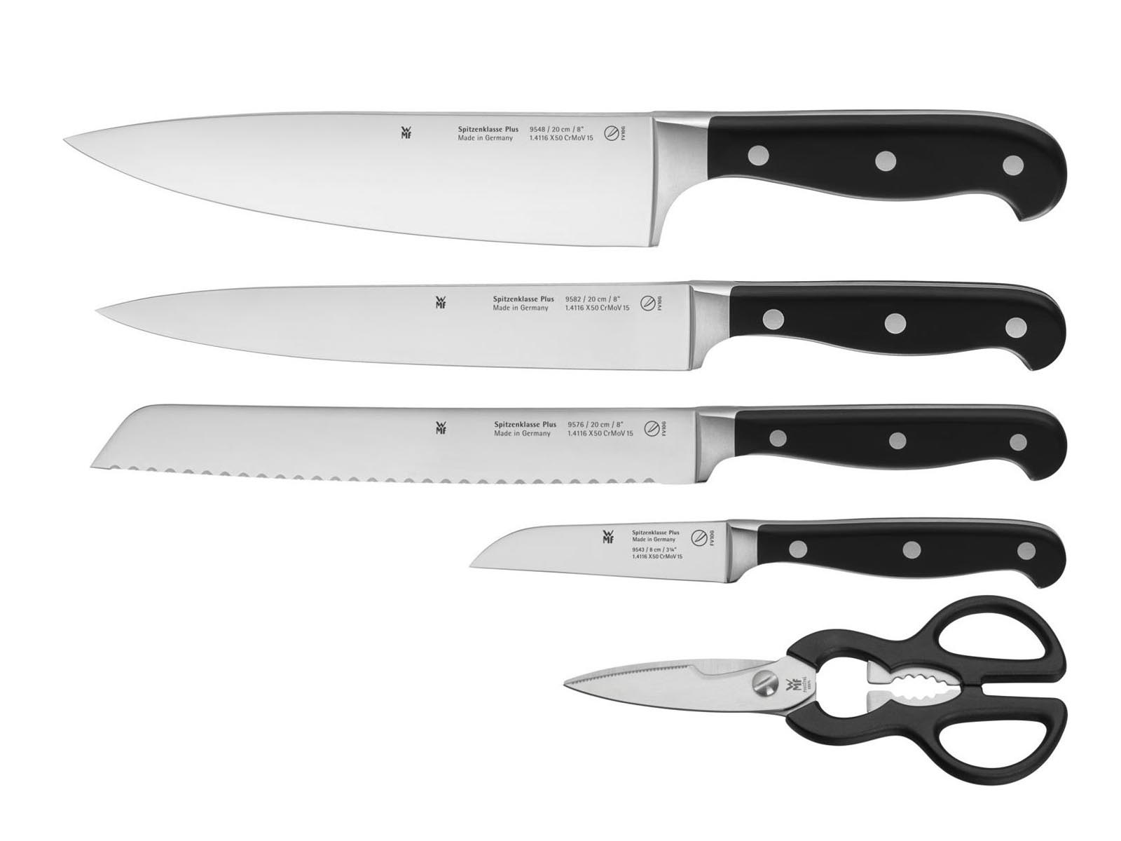 Zestaw zawiera komplet 4-ech noży z serii Spitzenklasse Plus: nóż szefa kuchni, nóż do chleba, nóż do mięsa oraz nóż do warzyw.