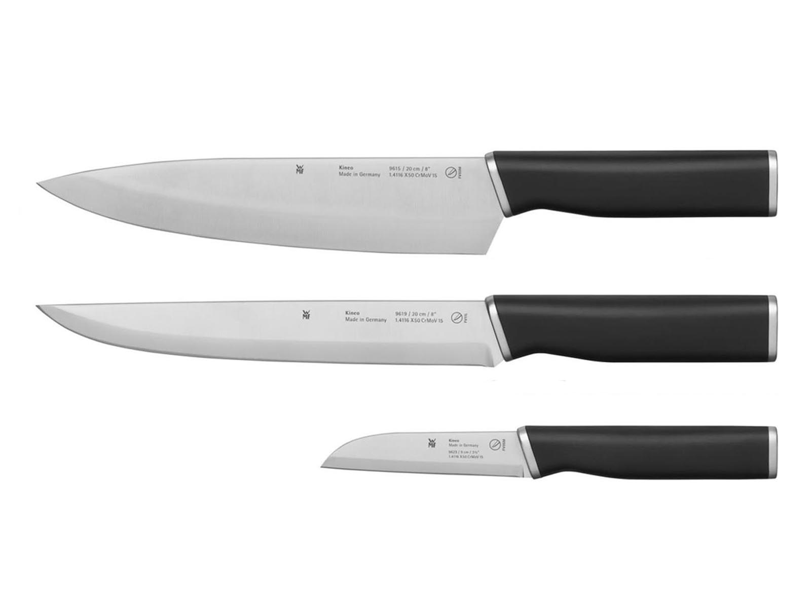 Zestaw zawiera komplet 3-ech noży: nóż szefa kuchni, nóż do mięsa oraz nóż do warzyw.
