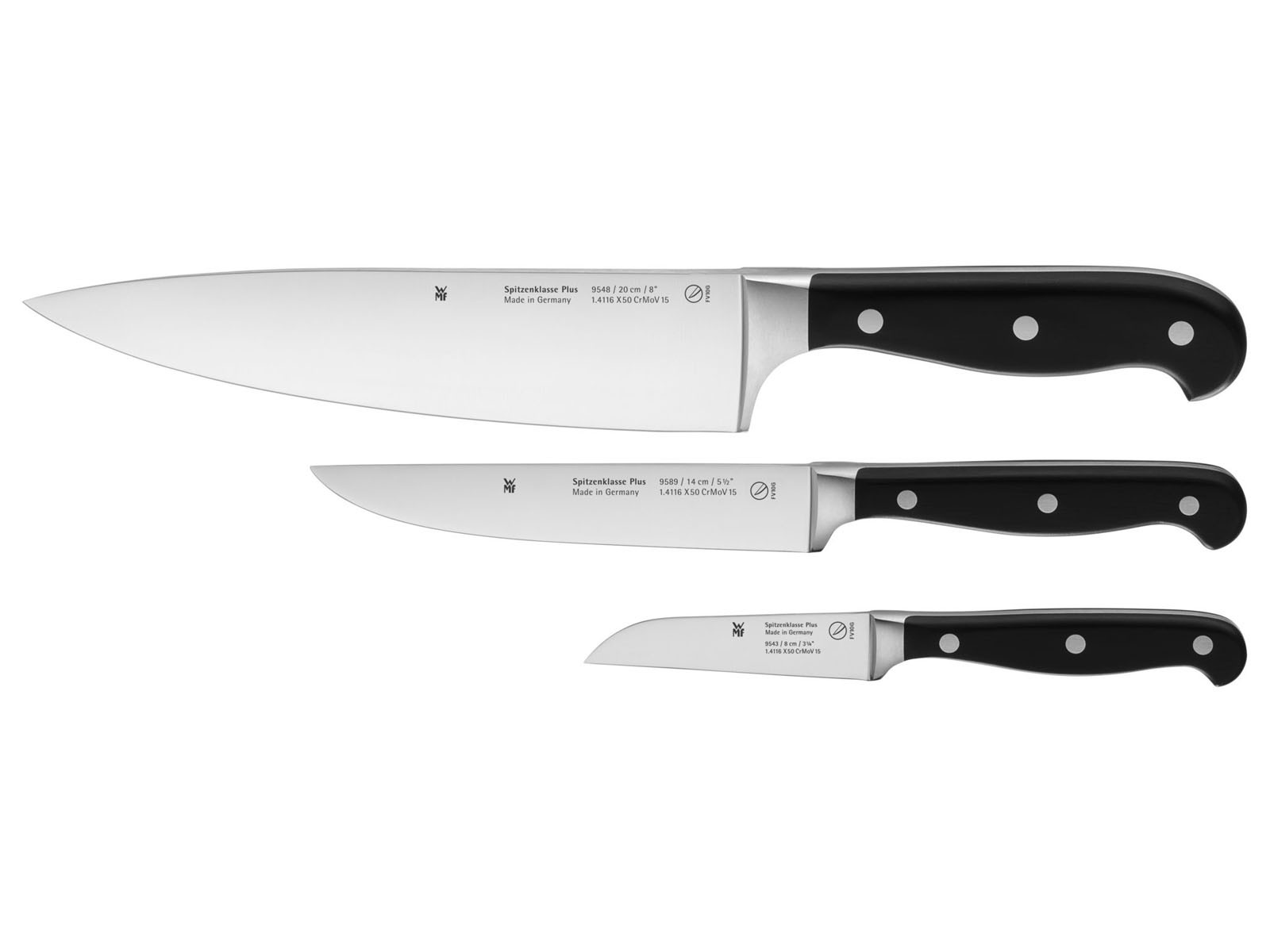 Oryginalny i praktyczny komplet 3-ech ostrych i wytrzymałych noży kuchennych z serii Spitzenklasse Plus.