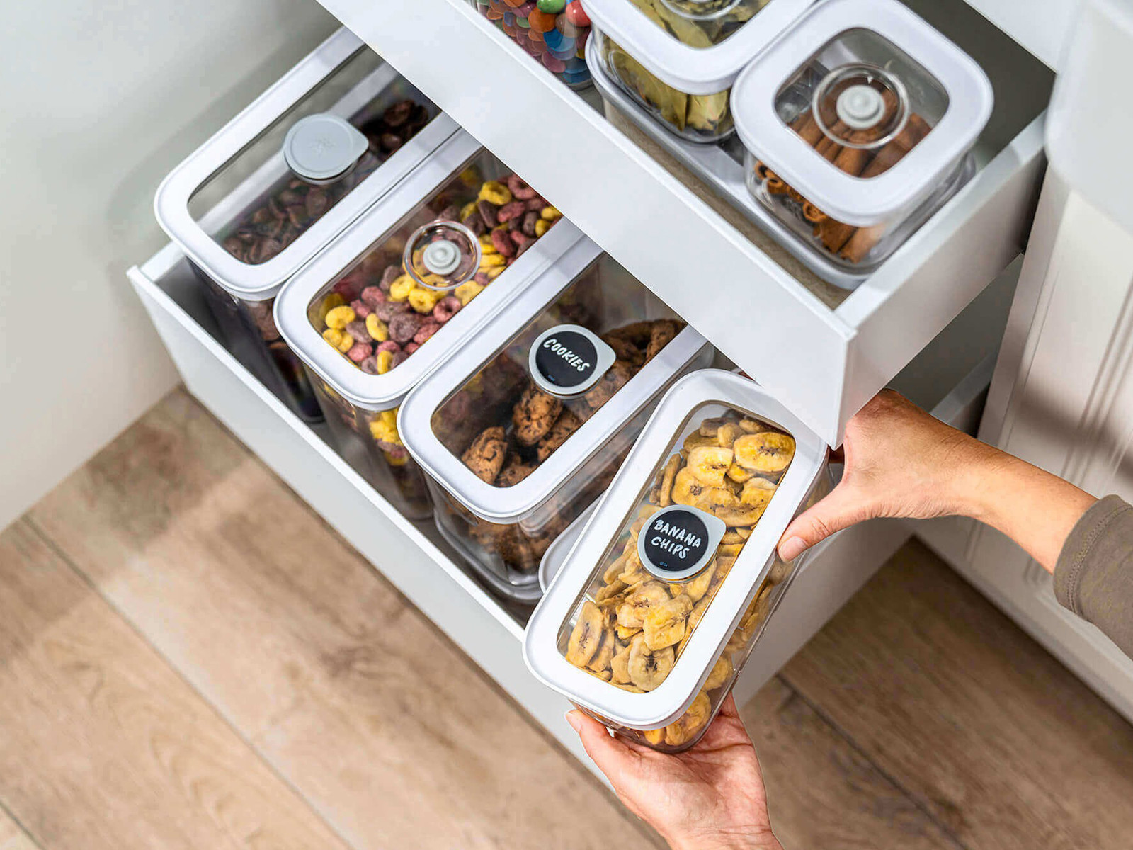Elegancki zestaw pojemników próżniowych i modułowych Zwilling Fresh & Save Cube z etykietkami i wkładem