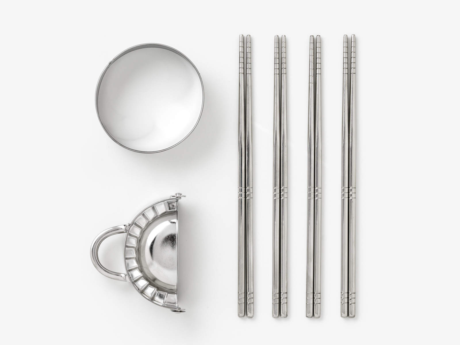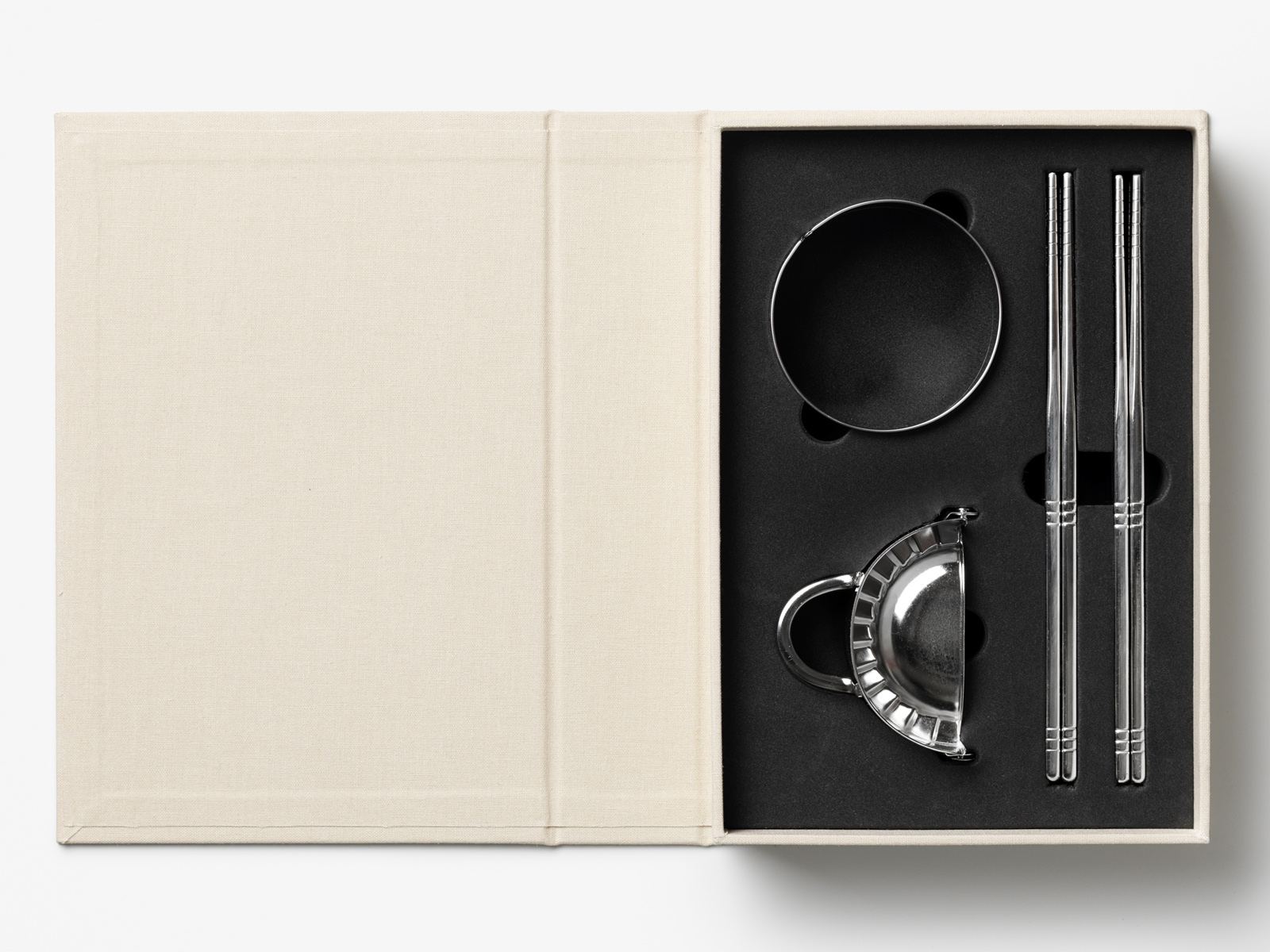 W komplecie znajduje się praska, wykrawacz do ciasta i 4 pary pałeczek – ten zestaw spełni wszystkie potrzeby miłośnika faszerowanych przysmaków! Narzędzia wykonane są ze stali nierdzewnej i nadają się do mycia w zmywarce. Opakowanie składa się z tkaniny, kartonu i pianki zabezpieczającej.