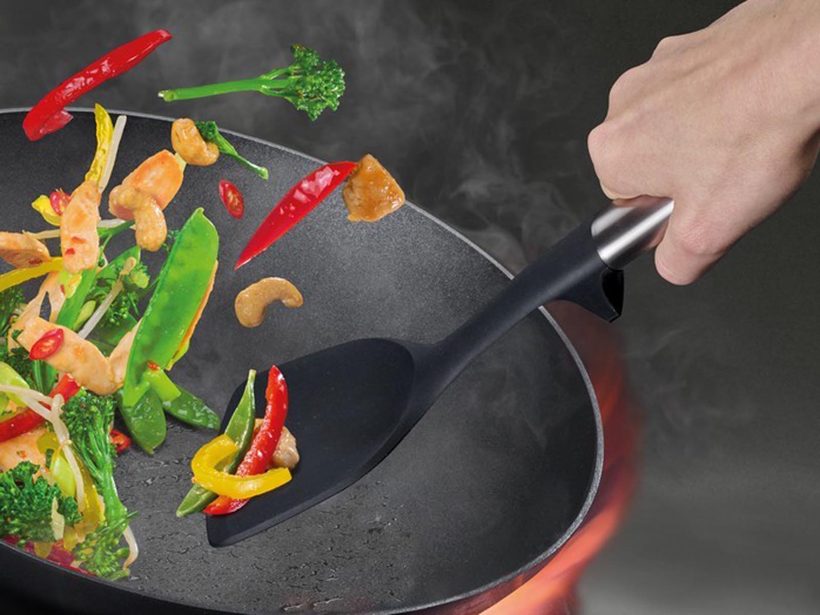 Zestaw przyborów ze stojakiem Joseph Joseph Elevate Fusion ułatwia gotowanie i smażenie w naczyniach z powłokami non-stick, zachowując przy tym pełną precyzję działania.