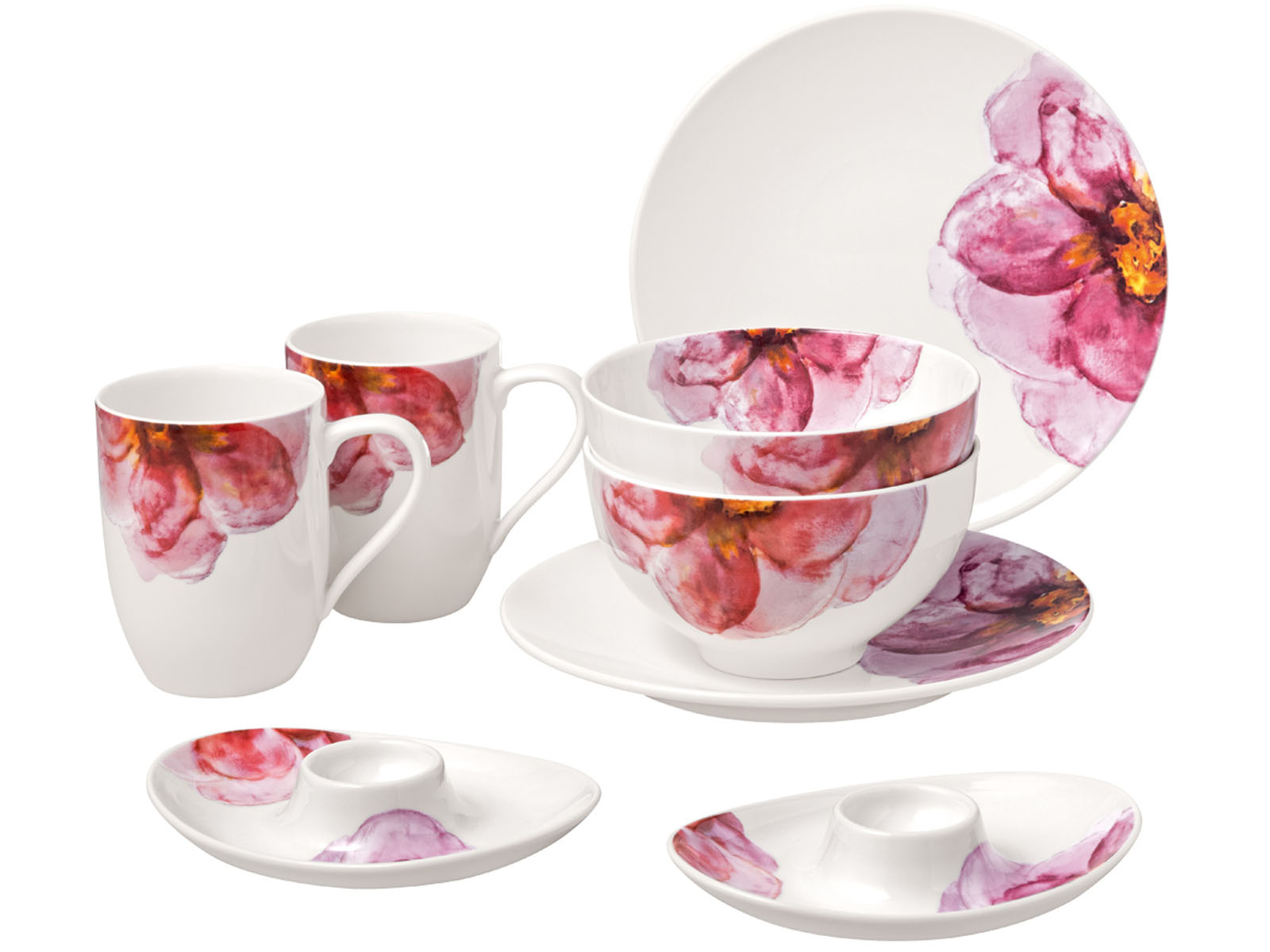 Villeroy&Boch Rose Garden to wyjątkowa kolekcja niezwykle eleganckiej zastawy stołowej wykonanej z najwyższej jakości porcelany. Stylistyczną inspiracją dla kolekcji jest romantyczny klimat ogrodu pełnego kwitnących kwiatów. Porcelana ozdobiona jest delikatnymi akwarelowymi rysunkami kwiatów, które tworzą spójną całość w odcieniach różu i bieli.