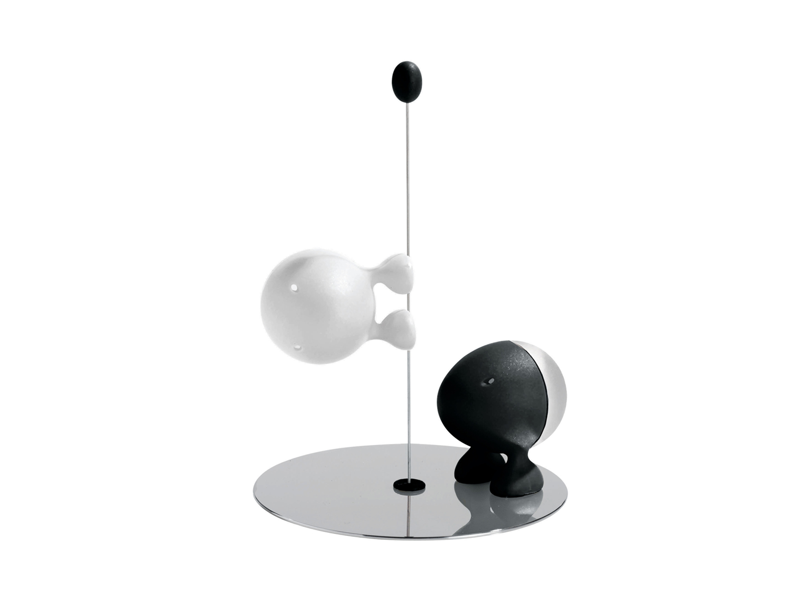 Zestaw Lilliput wprowadza na stół element nieoczywistego designu, zachowując przy tym pełną funkcjonalność codziennego użytkowania. Kontrast czerni i bieli nadaje całości wyrazisty charakter, a polerowana na lustro powierzchnia stali odbija światło, podkreślając lekkość kompozycji.